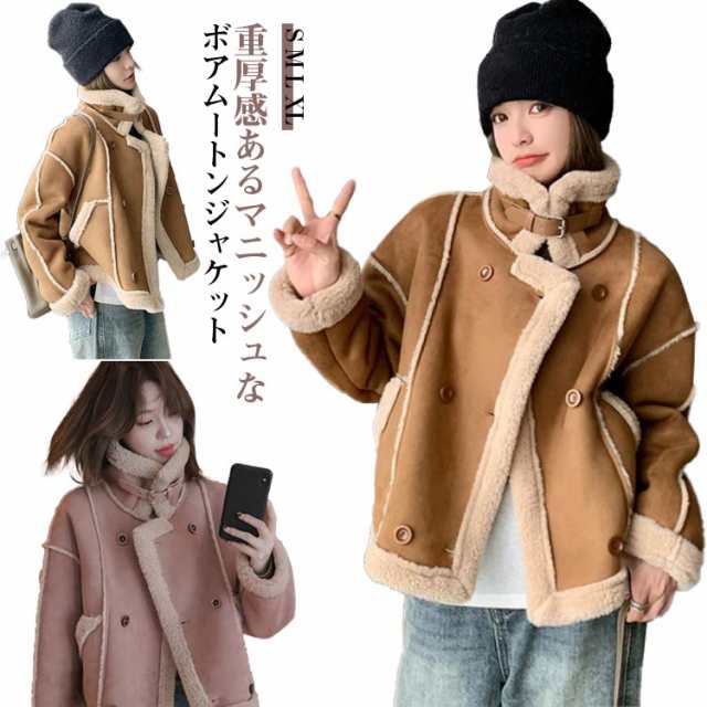 ムートンジャケット ムートンコート 裏ボア ボア レザージャケット ハイネック 厚手 裏起毛 ムートン ジャケット 暖かボア アウター 暖かい 防風 秋冬 防寒 ライダースジャケット 大人女性 スタンドカラー ジャケット