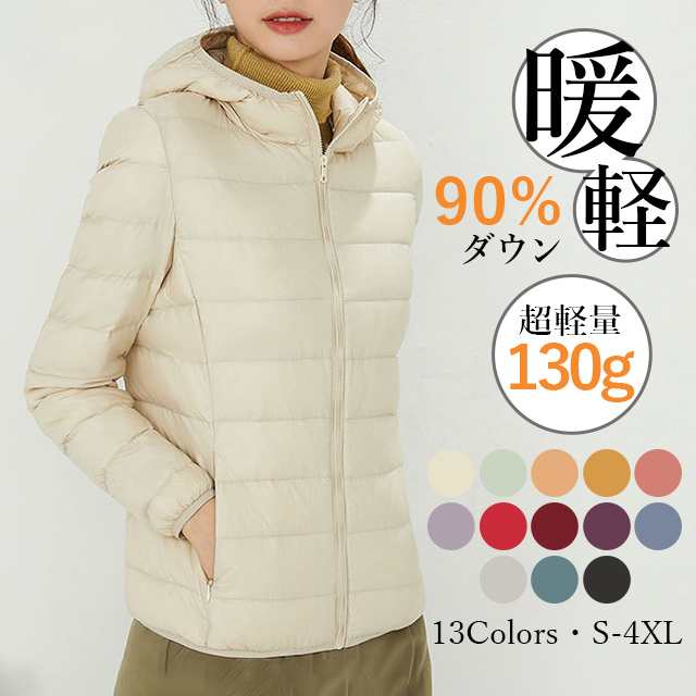 春新作 送料無料 ダウン90% ダウンジャケットダウンコート レディース ライトダウンジャケット軽量 薄手 帽子付き 大きいサイズ 撥水 無地 シンプルアウター ポーチ付 キルティング 防寒 コンパクト 軽い ライトダウンジャケット 上品 ショート丈 フード