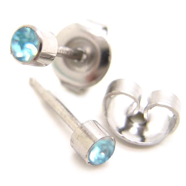 ファーストピアス 1セット(両耳用)滅菌パック アレルギーフリー サージカルステンレス メール便 ペア売り/ライトブルー (pr001-8)