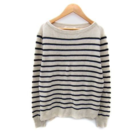 【中古】ゴア goa ニット カットソー 長袖 ボートネック ボーダー柄 ベージュ 紺 ネイビー /SY37 レディース