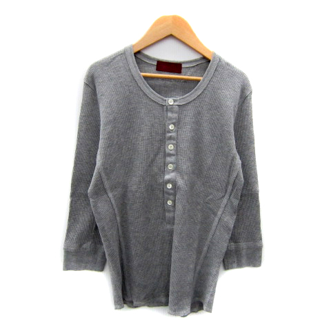 【中古】ホールナイン Whole9 ワッフルカットソー 七分袖 ヘンリーネック 無地 48 M グレー /SY36 メンズ
