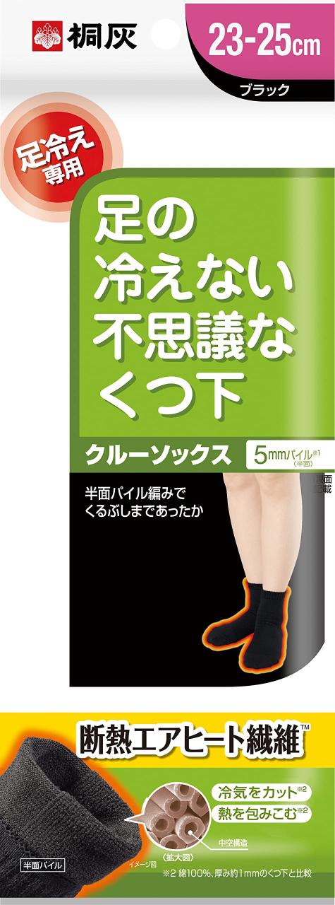 不思議なくつ下 足の冷えない クルーソックス 足先からくるぶし 足冷え専用靴下 23cm-25cm 黒色 1足分 桐灰