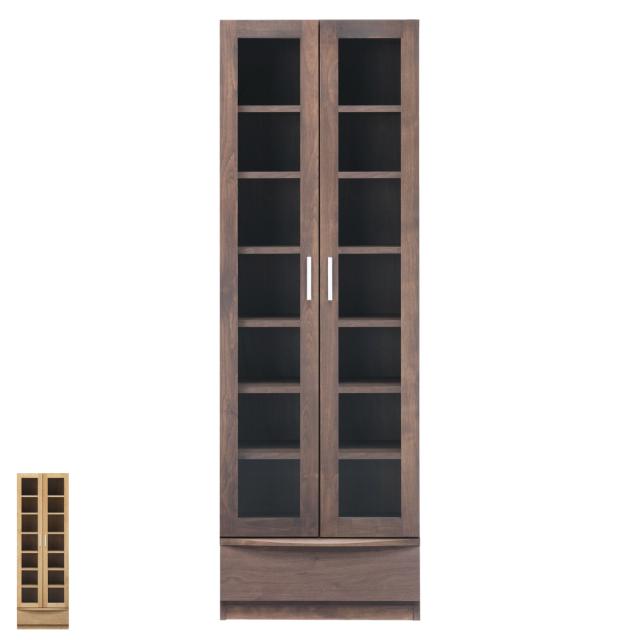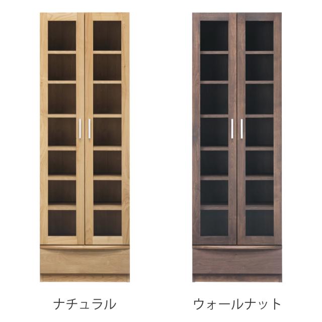 本棚 幅60.2cm 奥行42cm ハイタイプ ガラス扉 日本製 完成品 ( 開梱設置 棚 ラック 扉収納 可動棚 収納 アルダー材 書棚 組み合わせ 低ホルムアルデヒド ナチュラル ウォールナット )