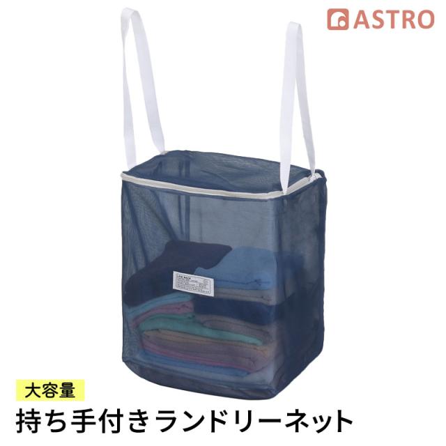 そのまま洗える ランドリーバッグ 【 持ち手付き 洗濯ネット 大 】 布団 ブランケット 枕 シーツ 大物 ランドリーバスケット ビッグサイズ 大容量 メッシュバッグ 折りたたみ ネイビー アストロ 515-04