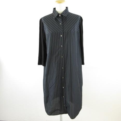 【中古】アルチザン ARTISAN シャツワンピース ひざ丈 七分袖 ストライプ 黒 15 *T166 レディース