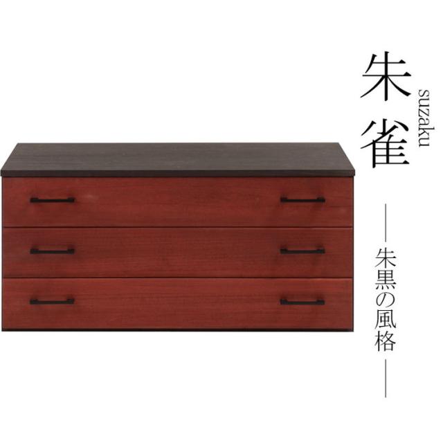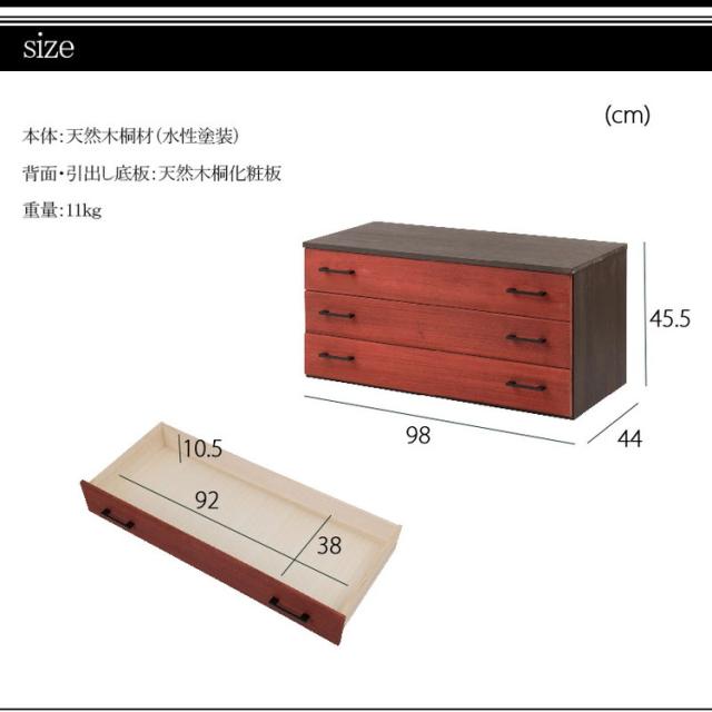 朱雀 総桐箪笥 3段 幅98 朱 民芸 李朝家具 和ダンス 和タンス 和箪笥 着物用 日本製 着物収納 引き出し チェスト 桐タンス 桐たんす 桐衣装箱 浴衣 天然木 木製 国産 衣裳ケース 収納タンス(代引不可)【送料無料】