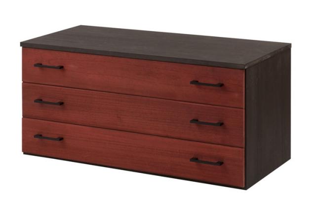 桐箪笥というと今もなお普遍的なデザインであり、変わらずとも継承していく良さがあるから。これを継承しつつ深みのある朱×漆黒の存在感を演出。