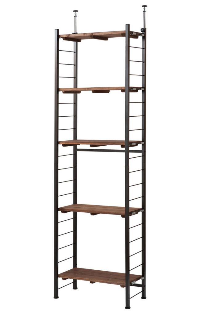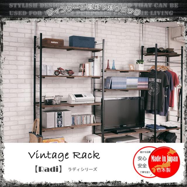 ヴィンテージな風合いの棚板を使用した『Radi』ラディシリーズ。突っ張り式で高い位置まで棚板をセットできるタワー型。