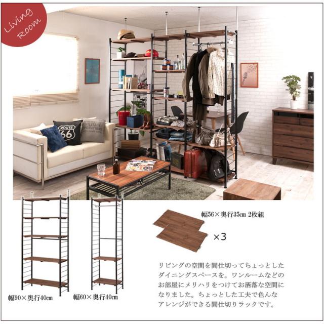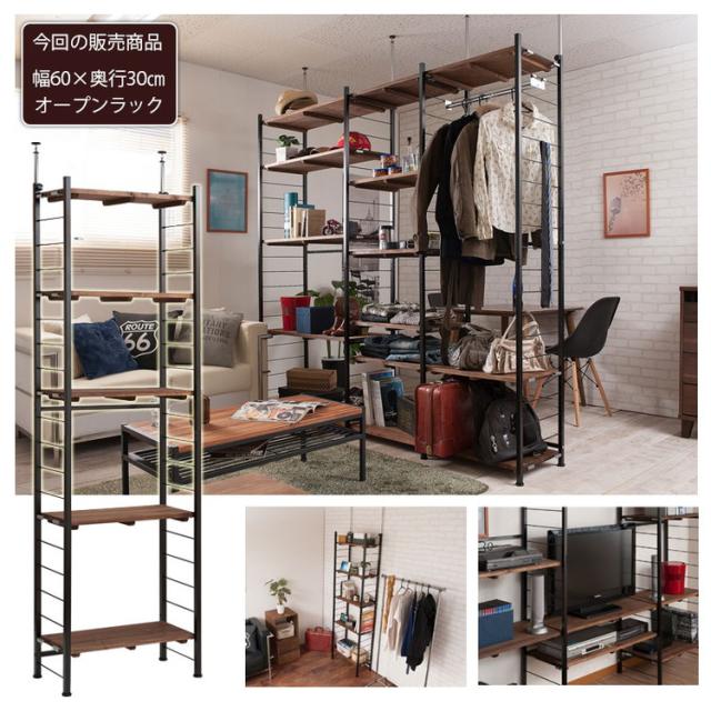 Radi オープンラック 幅60 奥行30 ブラウン ブラック オープンラック ワードローブ ヴィンテージ 壁面ラック 棚 つっぱり 薄型 収納棚 ディスプレイラック 店舗什器 カフェ(代引不可)【送料無料】