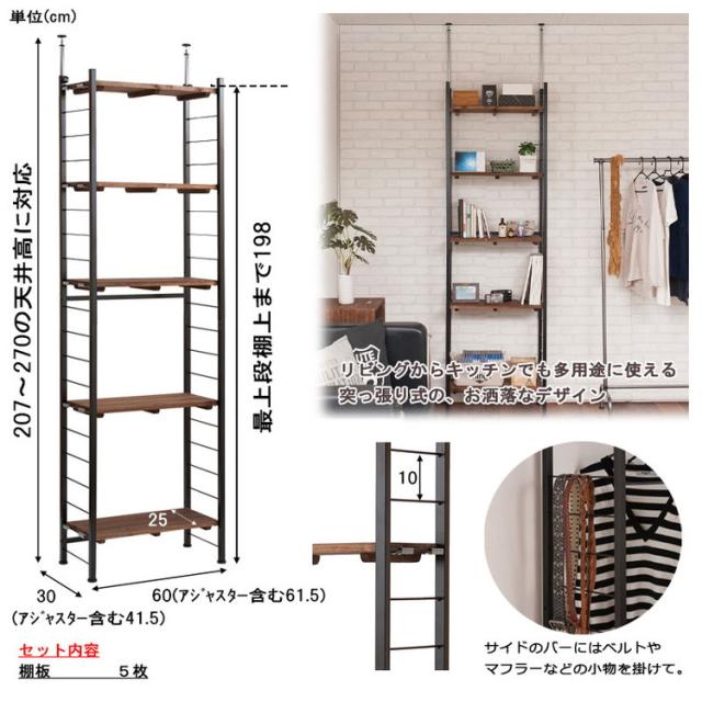 本体:(約)幅60(アジャスター含む61.5)×奥行30(アジャスター含む31.5)×高さ207〜270cm