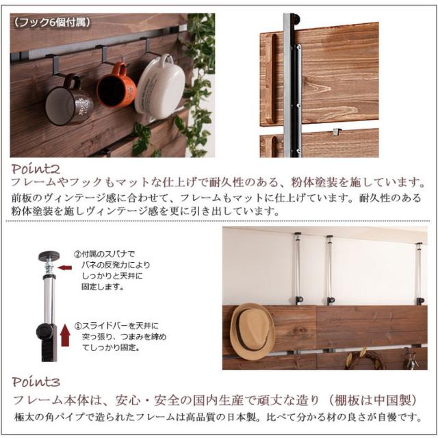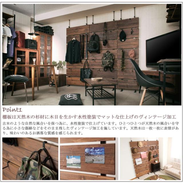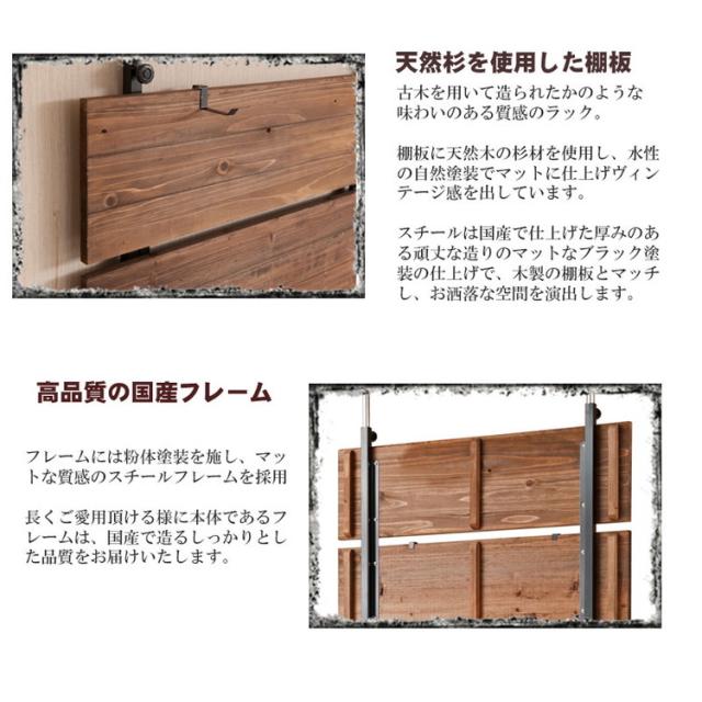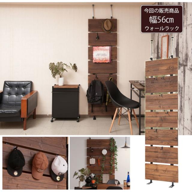 Bitto ウォールラック 幅56 つっぱり 天然木 ヴィンテージ アメリカン 西海岸インテリア 杉 壁面ラック 薄型 ディスプレイラック 店舗什器 カフェ 幅56(代引不可)【送料無料】