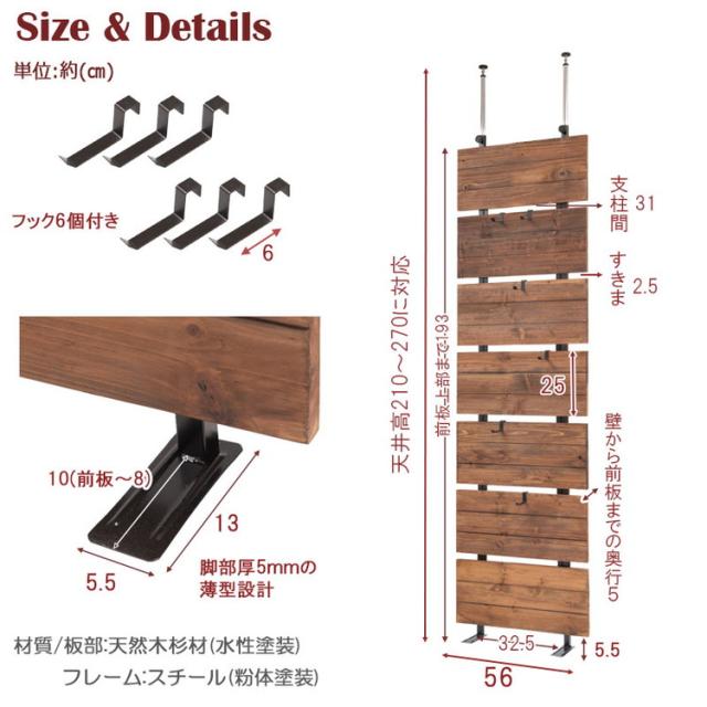本体:(約)幅56×奥行5(脚部13)×高さ210〜270cm