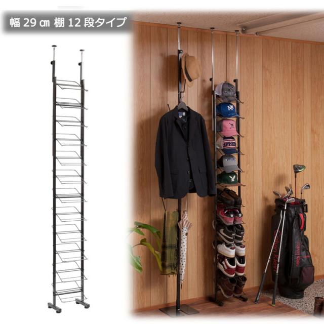 シューズラック 幅29 スリム 薄型 ブラック スチール つっぱり シューズラック 靴箱 ディスプレイラック 靴置き 靴収納 スニーカー 玄関 スリッパ 薄型 下駄箱 省スペース すきま ウォールラック(代引不可)【送料無料】