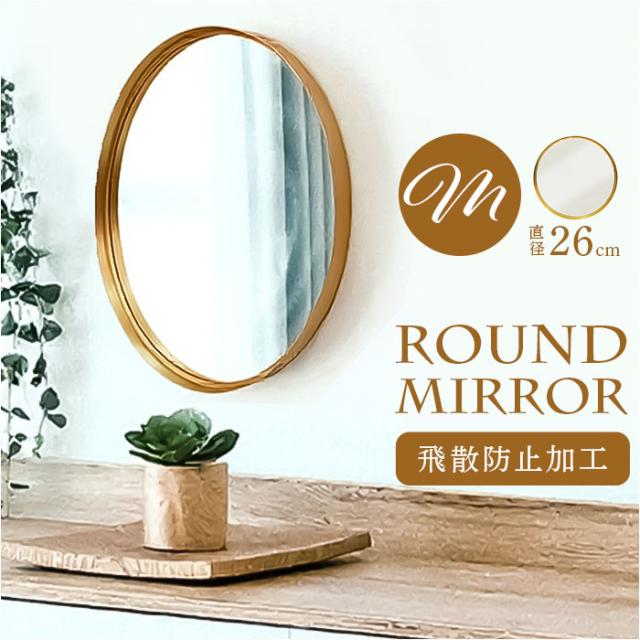おしゃれ 丸 壁掛け 鏡 M 通販 ミラー ウォールミラー 壁掛けミラー 壁掛け鏡 洗面鏡 丸型 円形 飛散防止 玄関 洗面所 トイレ 洗面 メイク 化粧 シンプル かわいい ゴールド ラウンド Grocia グロシア GRM-260 壁掛け式 インテリア