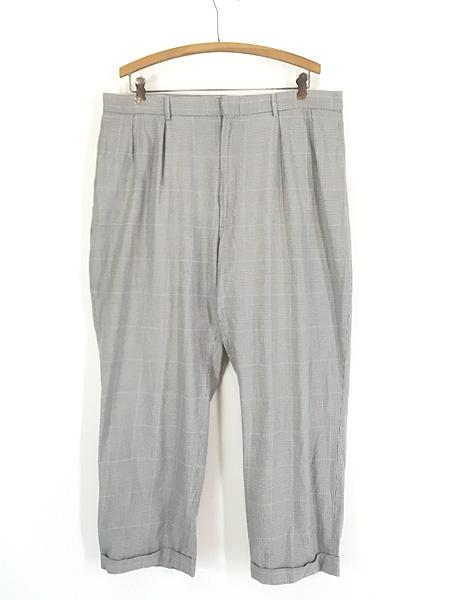 古着 90s Polo Ralph Lauren グレー チェック コットン スラックス タック パンツ ストレート W37 L27