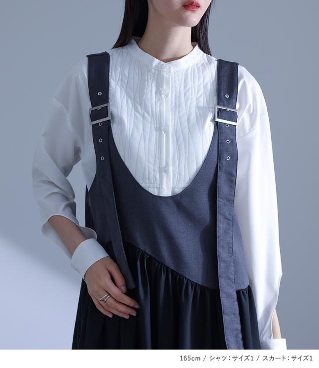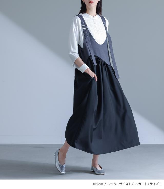 1,000円オフ4日0時迄 【送料無料】『ベルトバックルジャンスカ×キルティング切替プリーツシャツコーデ2点SET』【メール便不可】【40】[2点コーデセット 2025 レディース ジャンスカ ワンピース ロング丈 シャツ ブラウス 長袖 トップス]