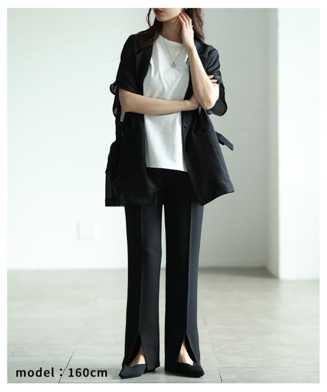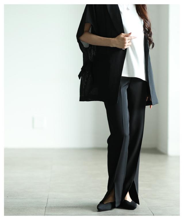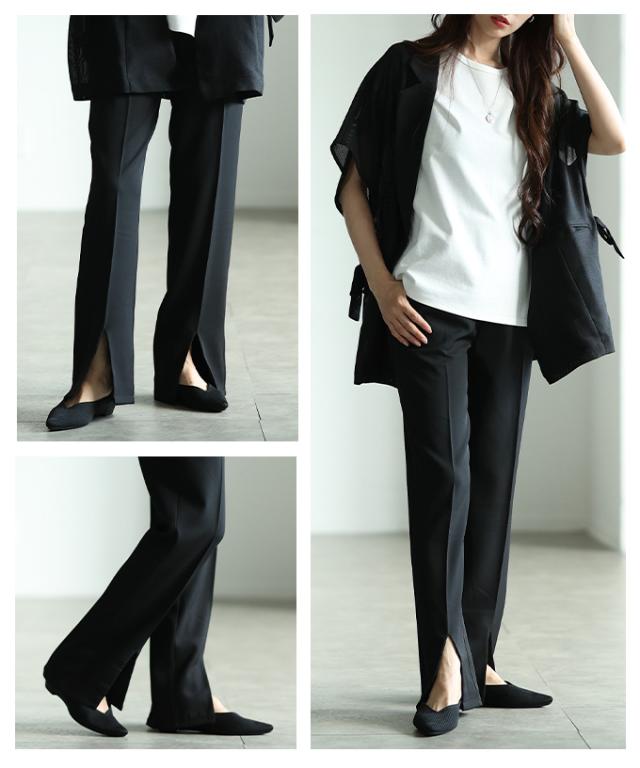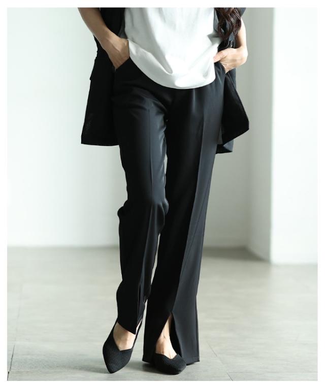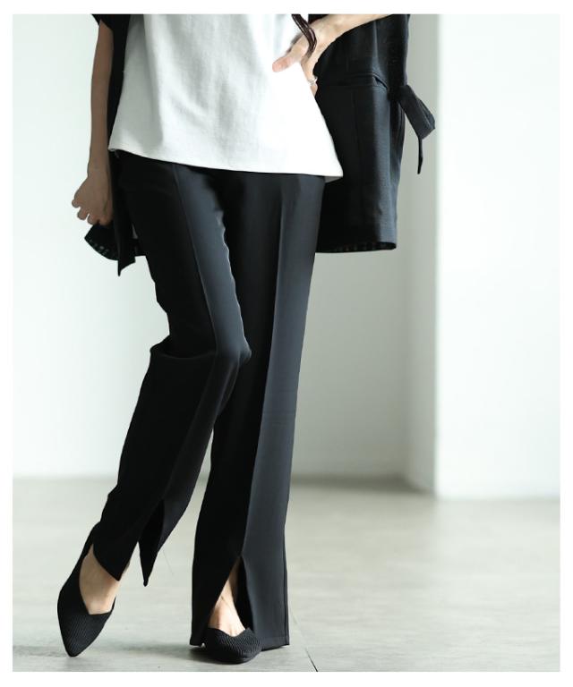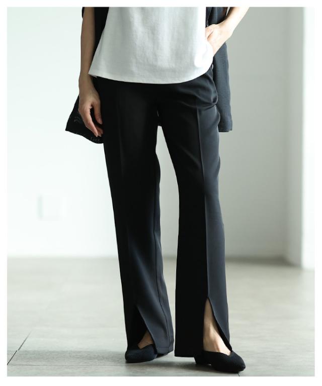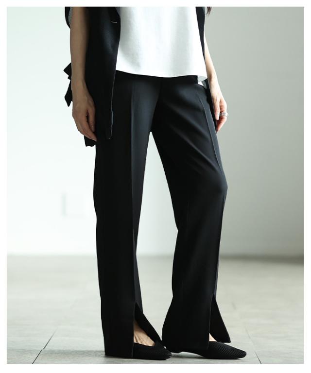 冬新作 魅せるシルエットをつくる裾スリットストレートパンツ レディース ファッション パンツ スリット スラックス スリム ロング ジッパーフライ 通年 30代 40代 50代 60代 サワアラモード sawaalamode otona 大人 cawaii 可愛い 洋服 かわいい服 mode-10071