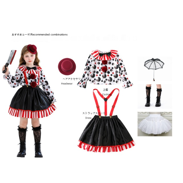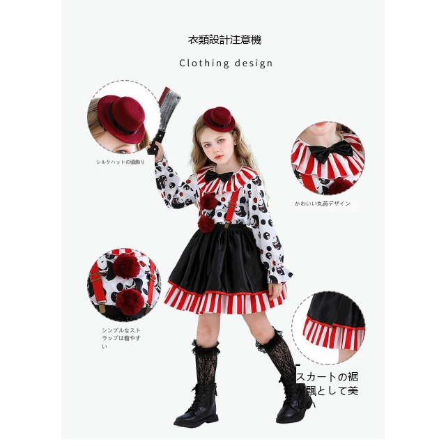 ハロウィン子供衣装サーカスホラー鬼瓦スカート血なまぐさい回魂ピエロが女の子カーニバルのパフォーマンス服を着て送料無料