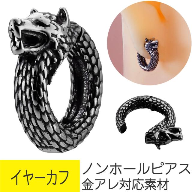 ウルフ ノンホールピアス イヤーカフ サージカルステンレス シルバー 狼 ゴシック ノンホールピアス イヤーカフス 金属アレルギー 対応