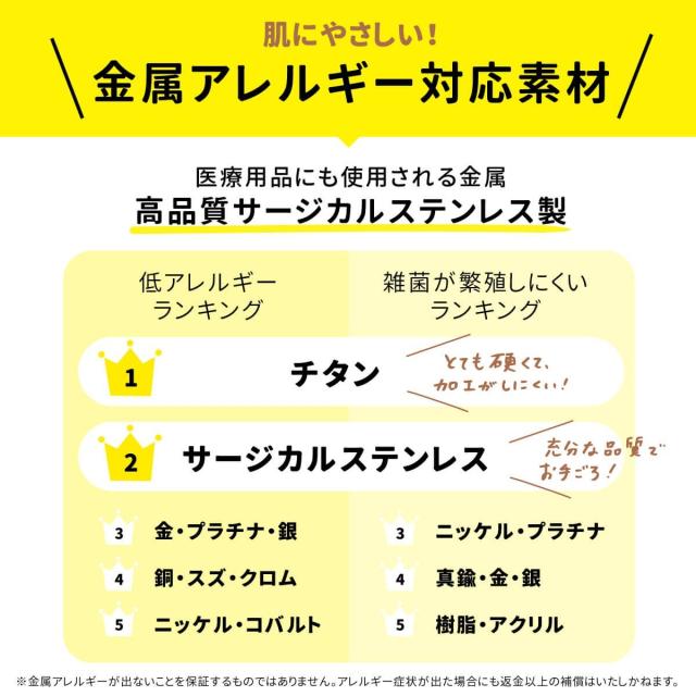 | サージカルステンレス チタン アクリル/樹脂/シリコン |