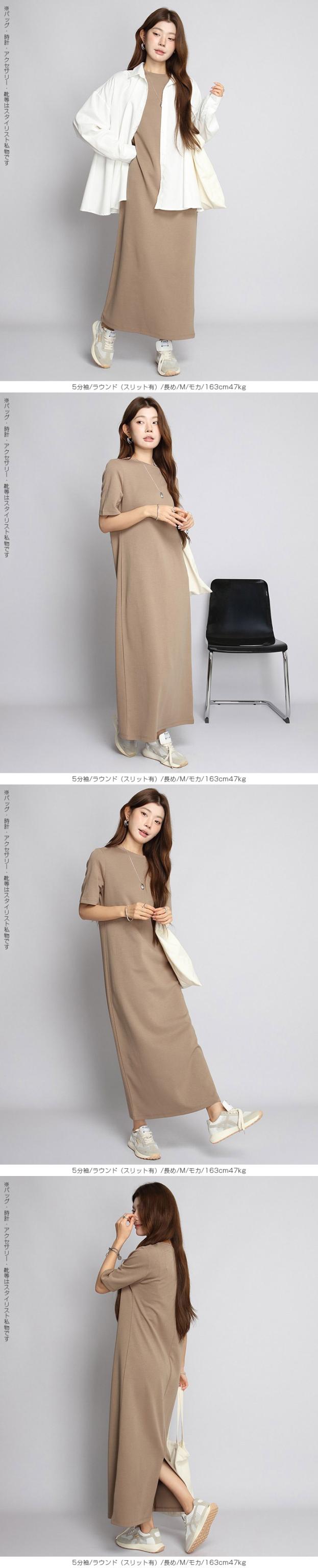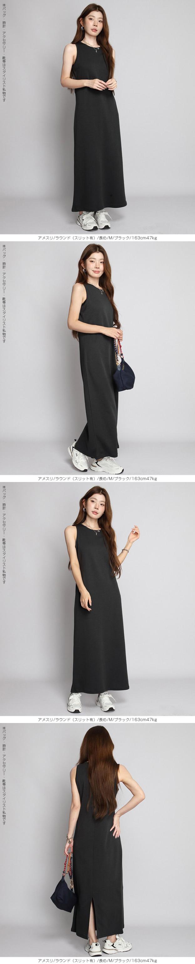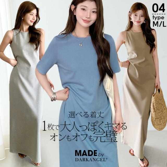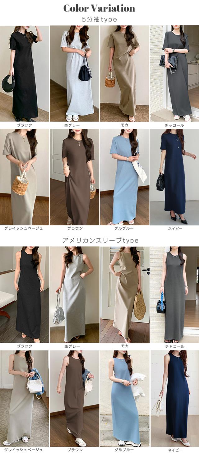 1,500円OFFクーポン!マキシワンピース レディース ロングワンピ 半袖 ノースリーブ アメリカンスリーブ 体型カバー 低身長 高身長 春 夏 大人カジュアル シンプル 楽ちん 送料無料 【 選べる4タイプマキシワンピース 5分袖|アメスリ】バックスリットありなし選べる 春新作