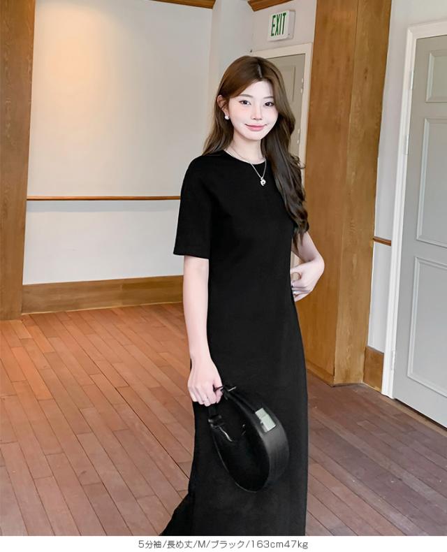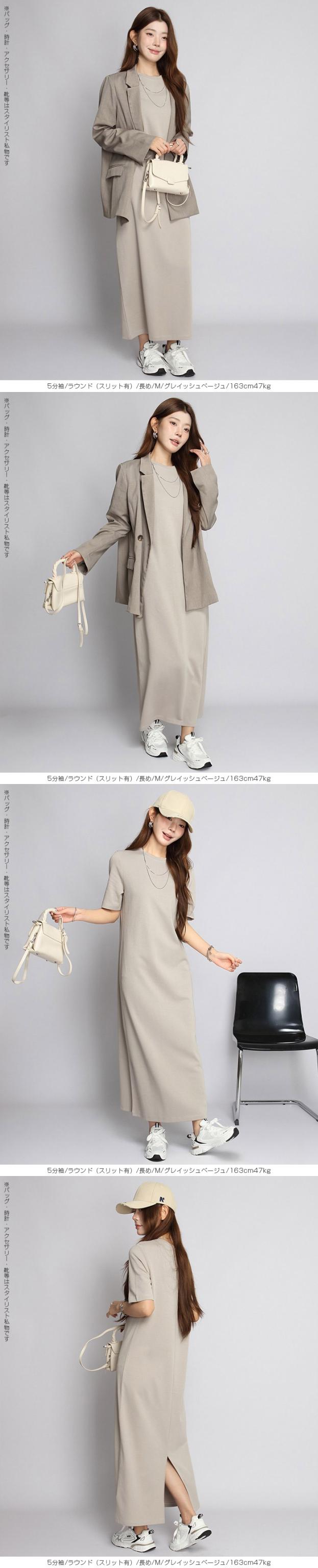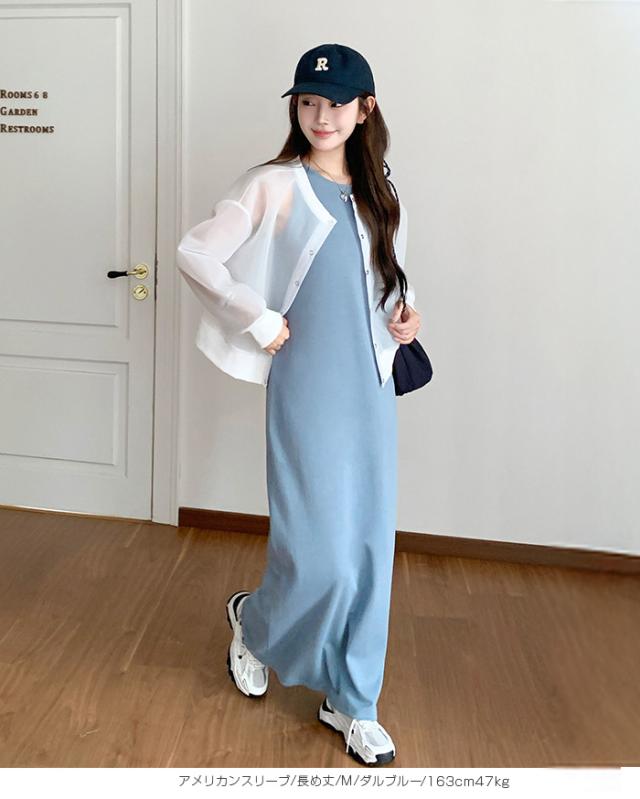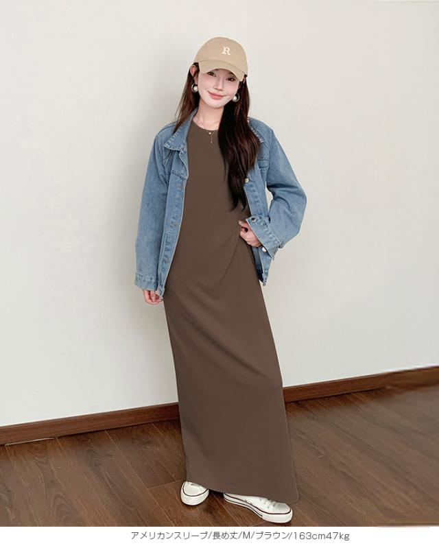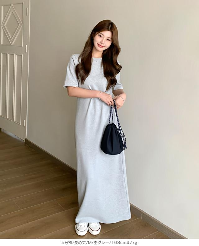 1,500円OFFクーポン!マキシワンピース レディース ロングワンピ 半袖 ノースリーブ アメリカンスリーブ 体型カバー 低身長 高身長 春 夏 大人カジュアル シンプル 楽ちん 送料無料 【 選べる4タイプマキシワンピース 5分袖|アメスリ】バックスリットありなし選べる 春新作