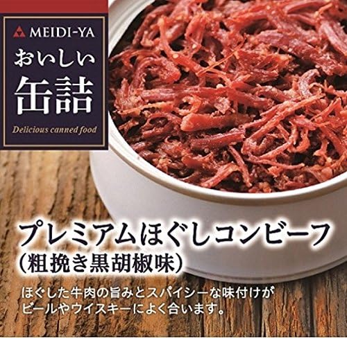 【12個セット】明治屋 おいしい缶詰 プレミアムほぐしコンビーフ 粗挽き黒胡椒味(90g)