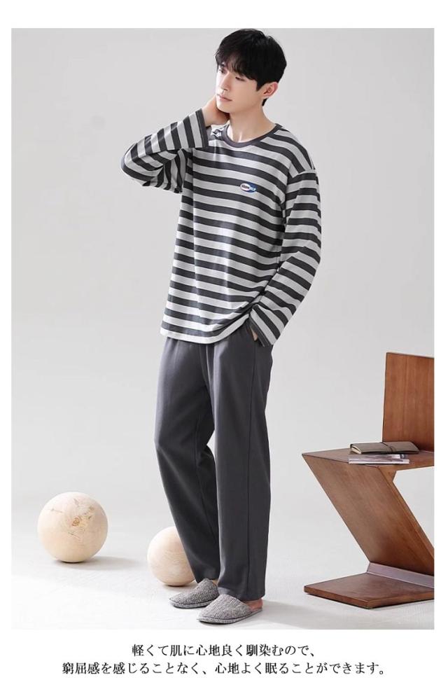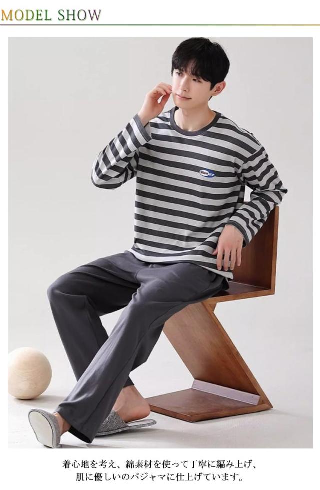 ルームウェア メンズ 長袖Tシャツ 部屋着 寝巻き ロングパンツ ルームウェア 春 長袖 冬 部屋着 パジャマ 秋 長ズボン クルーネック セットアップ ボーダー柄 オシャレ 大きいサイズ 20代 30代