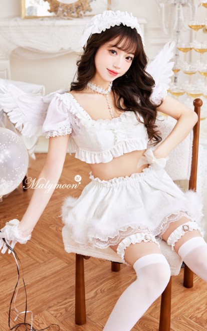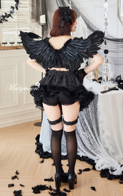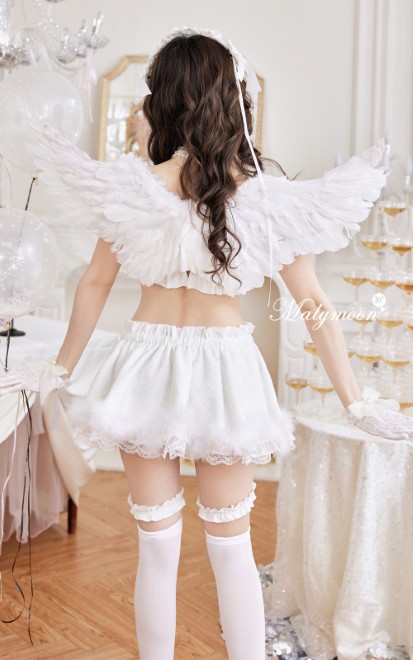 【セット内容】ヘッドドレス・トップス・手袋・羽・スカート・太もも飾り・ニーハイソックス