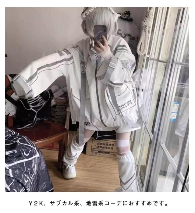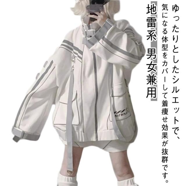 レディース パーカー 長袖 服 ジャケット メンズ 機能服 地雷系 パンク系 サブカル系 春 男女兼用 スポーツウェア ジップアップ 天使界隈 運動服 ジャージ 秋 冬 Y2K コート アウター 病みかわいい ゆったり 取り外し可能 帯 ダンス衣装