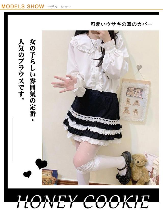 トップス 高校生 半袖 兎耳 お嬢様 コスプレ 甘ロり レディース ブラウス 量産型 可愛い フリル 制服 耳付き ウサギ 襟付き 地雷系 ロリータ シャツ Lolita 病み 長袖 jk 森ガール 女子高生 おしゃれ 中学生 兎耳 薄手 学生 春 秋