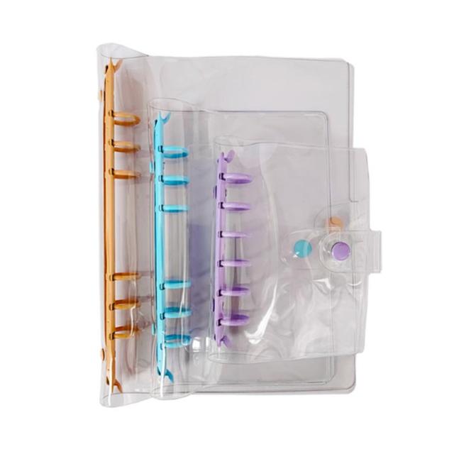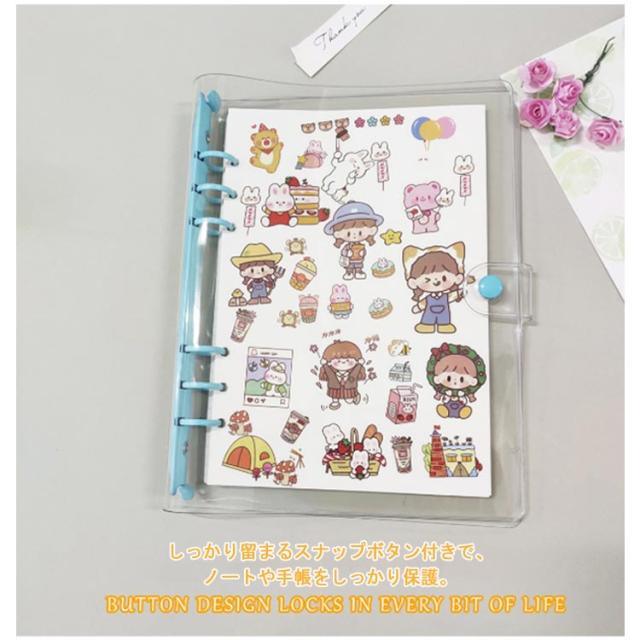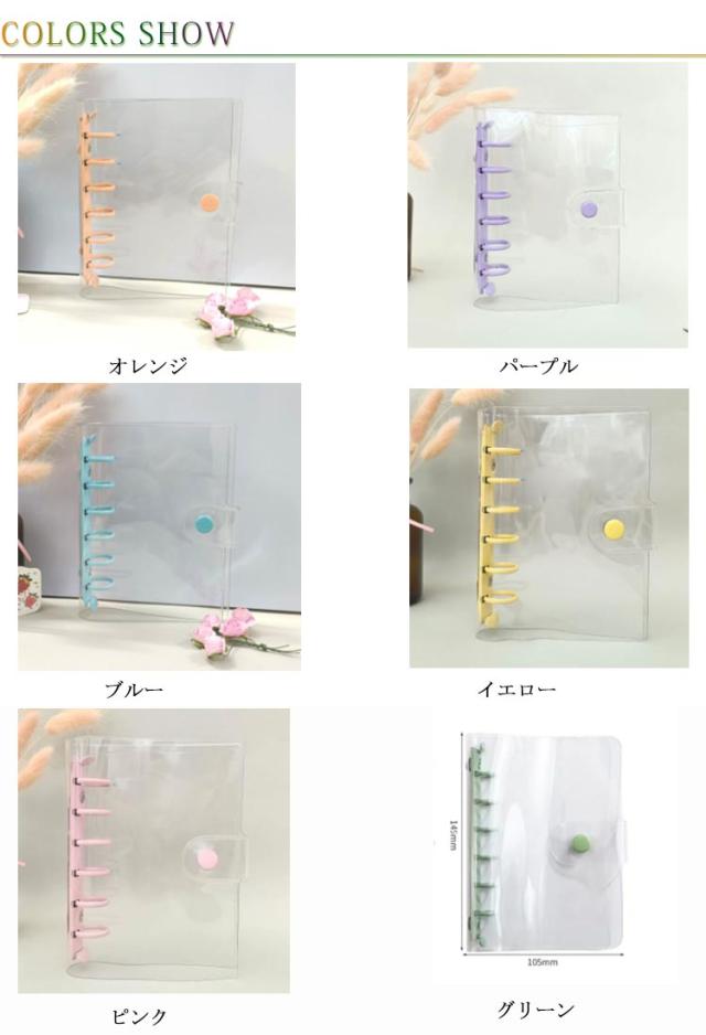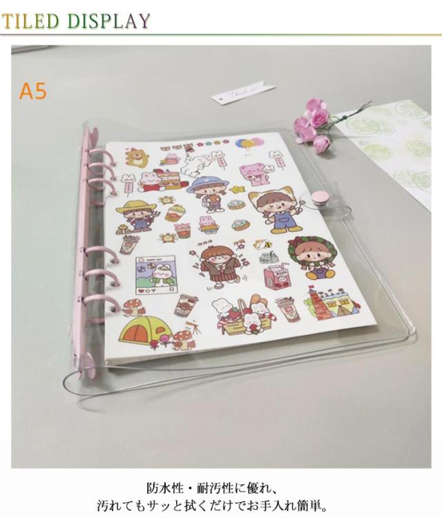 | 透明感のあるPVC素材を使用した活用度抜群のバインダー用カバー。 防水性・耐汚性に優れ、汚れてもサッと拭くだけでお手入れ簡単。 しっかり留まるスナップボタン付きで、ノートや手帳をしっかり保護。 A5/A6/A7の3サイズ展開で、学習用・仕事用・推し活用など幅広く活躍します。 お気に入りの手帳を、もっと可愛く・もっと便利に! | |