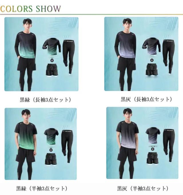 | 色 | 黒緑(長袖3点セット) 黒灰(長袖3点セット) 黒緑(半袖3点セット) 黒灰(半袖3点セット) |