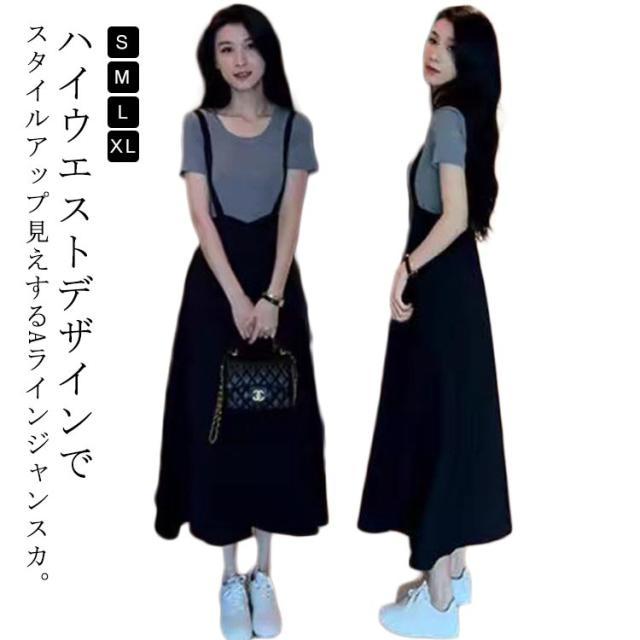 フレア サロペットスカート ワンピース レディース ロング サロペットスカート Aライン ジャンパースカート オールインワン サロペスカート ハイウエスト サロペット オーバーオール 春夏秋 キャミソールワンピース きれいめ 大人カジュアル 大人可愛い キャミワンピ