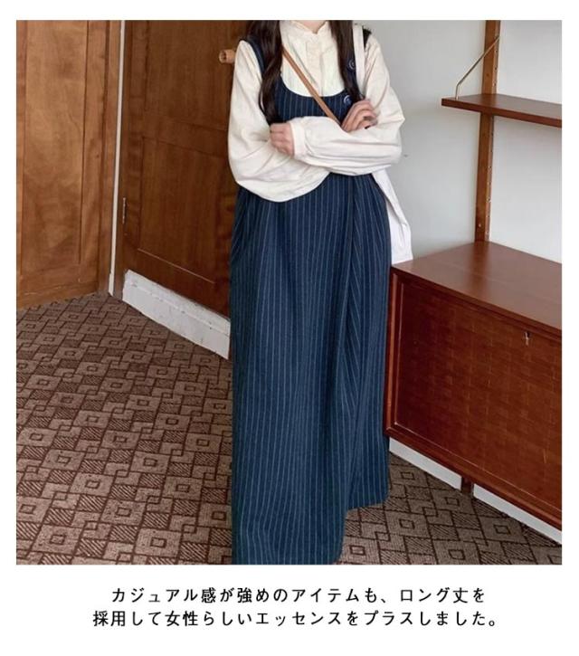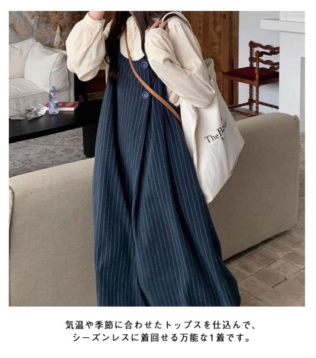 レディース ゆったり ジャンスカ ジャンパースカート ワンピース ストライプ柄 サロペット スカート ボタンデザイン ロング サロペットスカート キャミソールワンピース 春 ロングワンピース サロペットスカート ワイド 体型カバー 大人 カジュアル おしゃれ ネイビー 紺