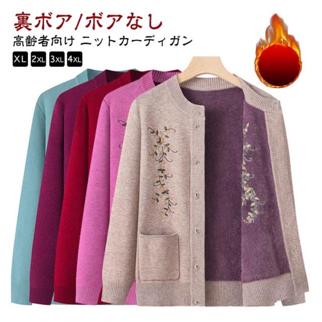 レディース 高齢者 ニットカーディガン お年寄り あったか シニア 90代 秋冬 5色 防寒 70代 60代 80代 寒さ対策 プレゼント ギフト お誕生日 婦人服 女性 ハイミセス 祖母 暖かい 老人 おばあちゃん 大きいサイズ 裏起毛 シニアファッション 敬老の日 XL 2XL 3XL