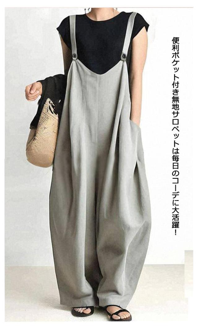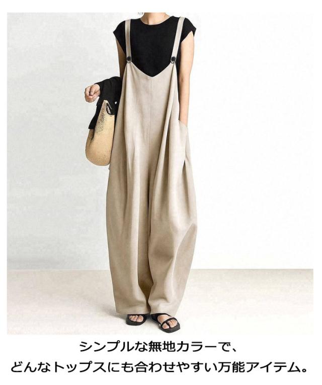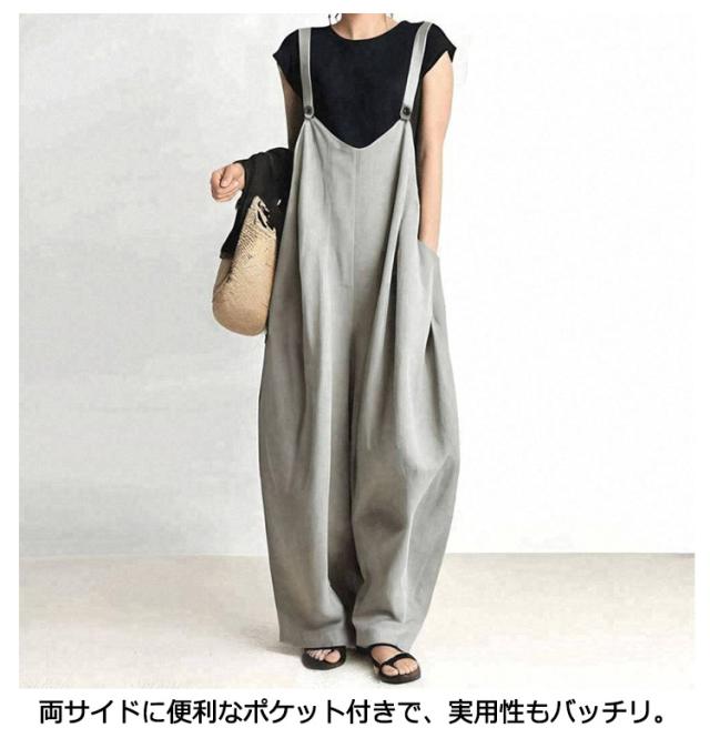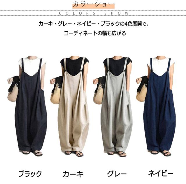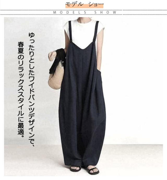 オーバーオール 薄手 フリーサイズ ワイドパンツ 大きいサイズ ゆったり 無地 春夏 オーバーオール レディース 動きやすい 便利ポケット 着回し 軽量 通勤 通学 つなぎ 長ズボン カーキ グレー ネイビー ブラック 夏服 春服 秋服