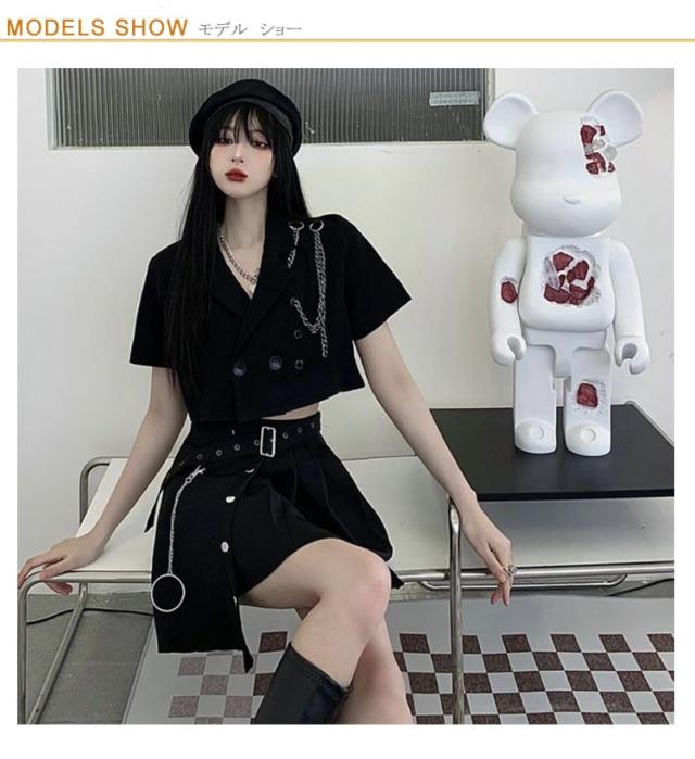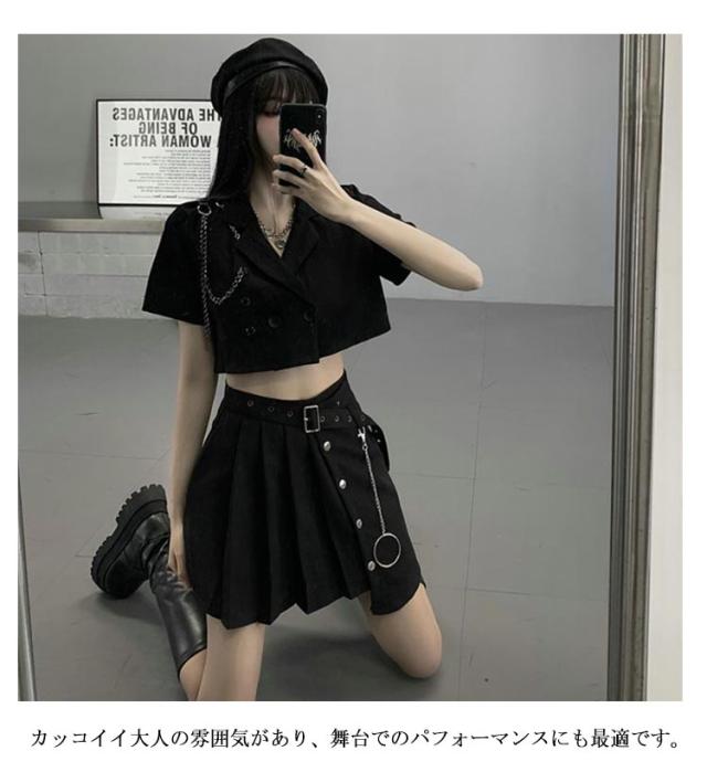 衣装 黒 スカート レディース セットアップ へそ出し トップス 黒 ジャケット 高校生 韓国 高校生 ジャズダンス ヒップホップ k-pop アイドル衣装 女の子 ダンスウェア 大人向け 半袖 上下3点セット JAZZ 演出服 練習着 ステージ衣装 オシャレ 派手