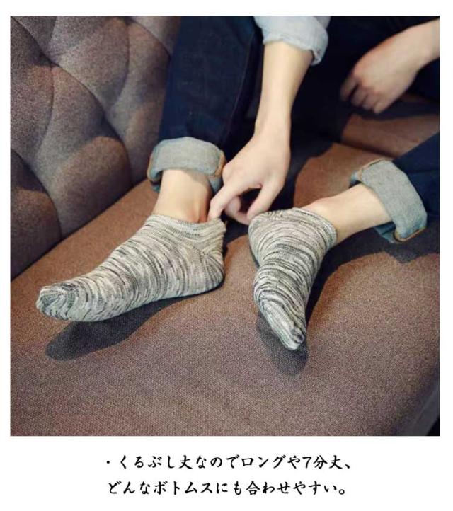 | ・メンズスニーカーソックス ・綿生地で吸汗性に優れ、履き心地もサラッと抜群。 ・くるぶし丈なのでロングや7分丈、どんなボトムスにも合わせやすい。 | |