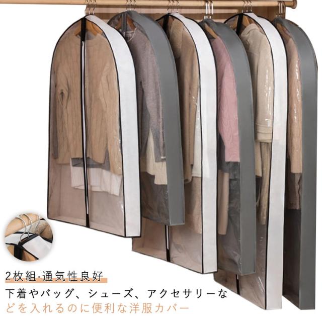 衣類カバー 洋服カバー 2枚組 マチ付 押入れ収納 スーツサイズ 型崩れ防止 衣装カバー 不織布 ほこり除け 通気性良好 厚手 衣類カバー ほこり防止 日焼け防止 衣服収納 衣服カバー 衣類収納袋 透明 クローゼット収納 ハンガー コスプレ 衣装保管