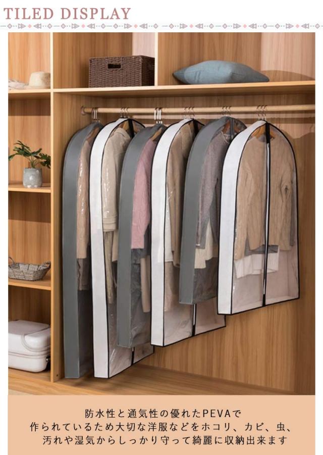 | 下着やバッグ、シューズ、アクセサリーなどを入れるのに便利な洋服カバー。 上部のハンガーフックを通す穴はホコリが入りにくいように小さくなって、いつもの悩みを解消♪ 中身が一目瞭然で洋服を見つける時間短縮♪ 防水性と通気性の優れたPEVAで作られているため大切な洋服などをホコリ、カビ、虫、汚れや湿気からしっかり守って綺麗に収納出来ます。 洗濯できる生地なので、カバーが汚れた場合、やさしく手洗いしたり、濡れた布で拭きすぐに綺麗になりますので、長期間繰り返して使用可能です。 普通の不織布製より丈夫で、数年経ってもボロボロになりません。 | |