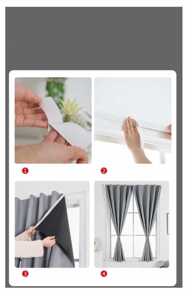 | 【マジックテープ式】 遮光断熱カーテン! マジック両面テープが付いて、窓枠や壁に貼り付けるだけで一人でも簡単装着できる ちょっとした間仕切りや目隠しにもピッタリ。 100%遮光断熱uvカット加工でフローリングや家具の日焼け防止もおすすめ | |