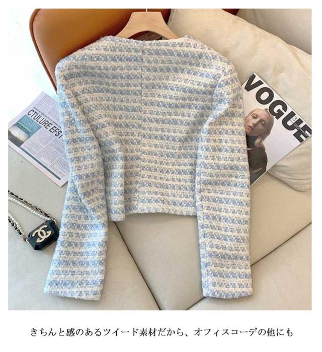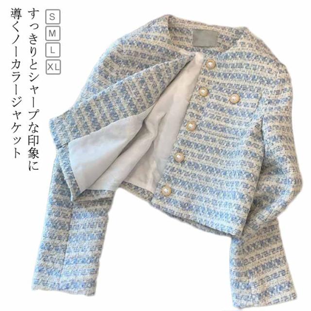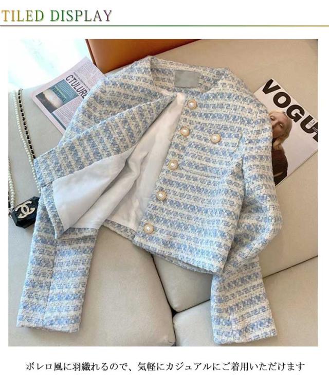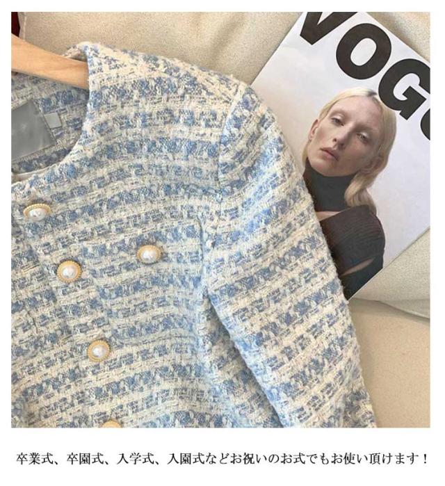 冬 ツイード レディース フォーマルジャケット ジャケット アウター ショート丈 ノーカラージャケット きれいめ 長袖 ジャケット 秋 カジュアル 入学式 卒業式 入園式 結婚式 お宮参り