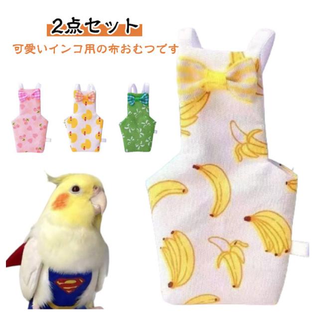【2点セット】鳥 鳥用品 鳥服 インコ ハーネス インコの服 かわいい 鳥用おむつ フライトスーツ 小鳥 ペット服 服 【2点セット】鳥 リボン レモン スイカ ピーチ パイナップル セキセイインコ ボタンインコ
