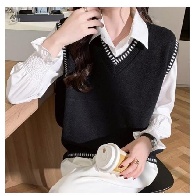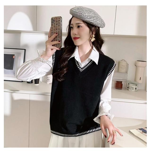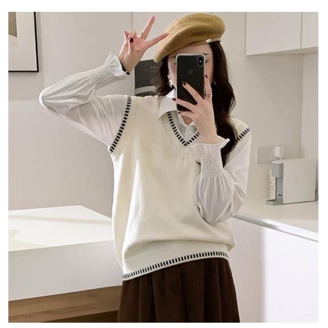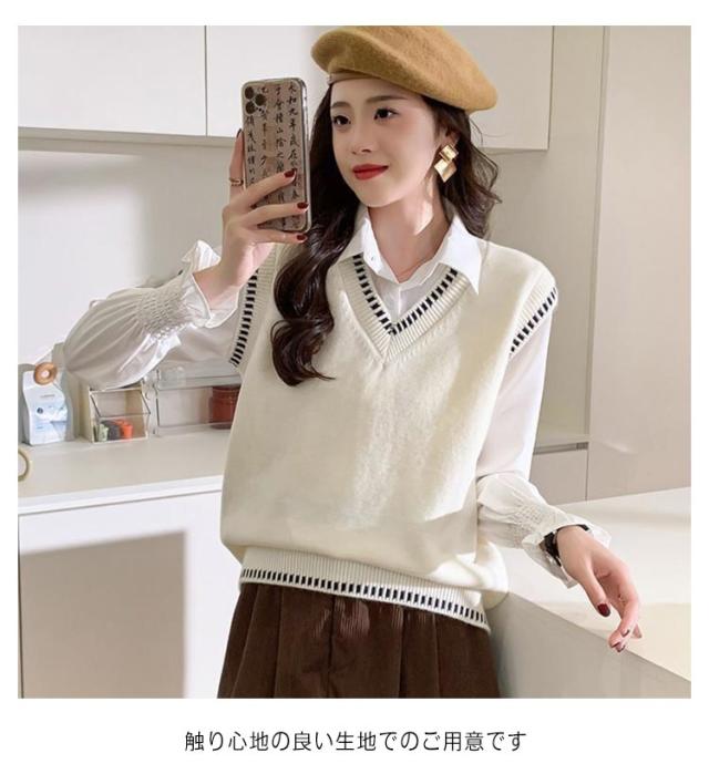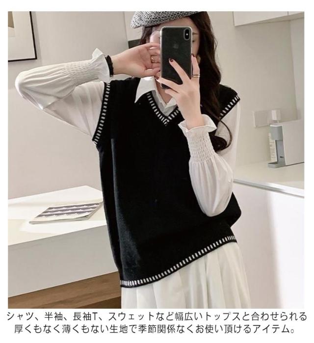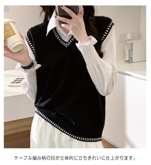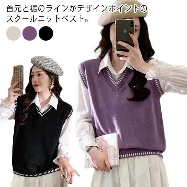 女子 スクール ライン入り 制服 Vネック 学生服 ケーブル編み プルオーバー ベスト ベスト 高校生 スクールセーター 女子高生 入学 制服 学生服 中校生 ニットベスト 通学 春 夏 冬 レディース ニットベスト トップス ゆったり