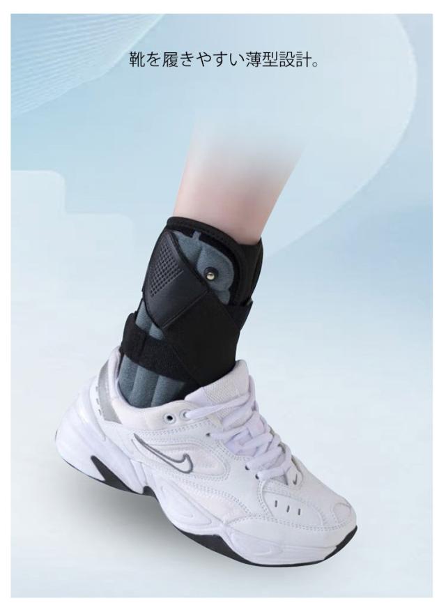 | ・足首の内反の動きを安定・サポート ・固定力を自由に調整できるエアー式 ・しっかり固定して関節の負担を軽減。 ・足先制限をせず、歩行や運動の妨げになりにくい構造です。 ・靴を履きやすい薄型設計。 | |