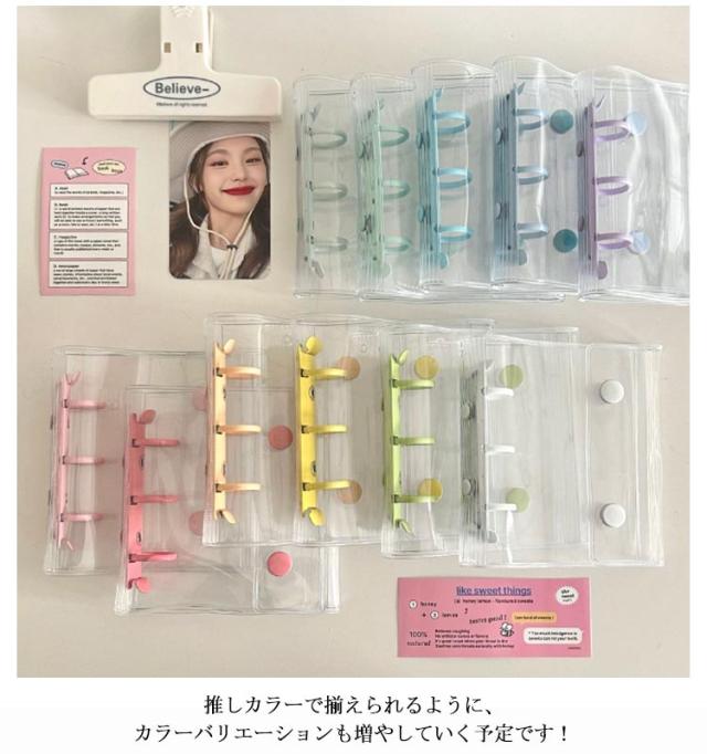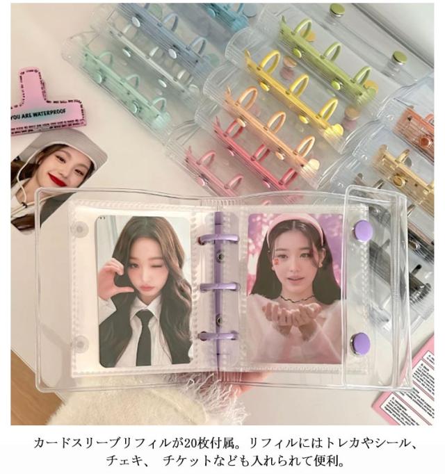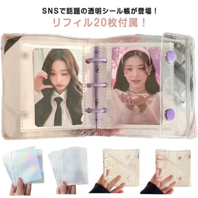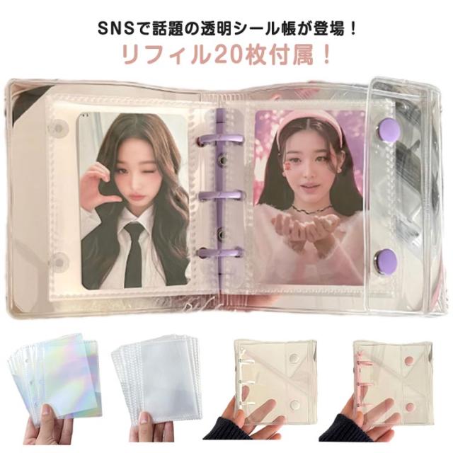| SNSで話題の透明シール帳が登場!リフィル20枚付属! クリア素材の手帳で、自分だけのオリジナルデコレーションが楽しめます。 小さくてかわいいサイズのクリアバインダー。持ち運びにピッタリで、ちいさなカバンにも入ります。 カードスリーブリフィルが20枚付属。リフィルにはトレカやシール、チェキ、 チケットなども入れられて便利。 推しカラーで揃えられるように、カラーバリエーションも増やしていく予定です! | |