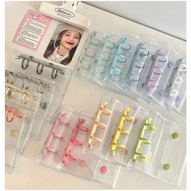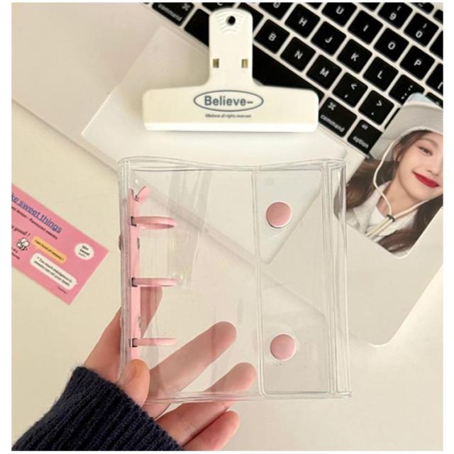 かわいい シール帳 透明バインダー シール コンパクト手帳 【リフィル20枚付属】 カスタマイズ手帳 シール手帳 ボタン付き 透明 クリア 透明 バインダー 手帳型 アクスタケース トレカ収納 推し カラー ファイル 推し活グッズ 持ち運び オタ活グッズ 【リフィル20枚付属】 PVC