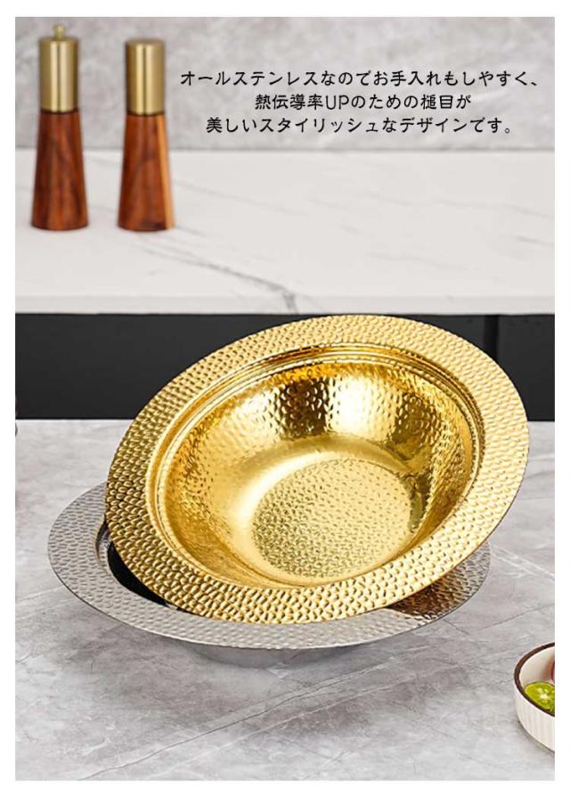 | 高級感溢れるステンレス製の寄せ鍋! 寄せ鍋やしゃぶしゃぶ用としてはもちろん、そうめんやサラダなどの器としても使えるので一年中活躍するアイテムです。 オールステンレスなのでお手入れもしやすく、熱伝導率UPのための槌目が美しいスタイリッシュなデザインです。 直火はもちろん、IH対応です。 | |