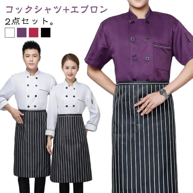 おしゃれ レディース コックシャツ 調理服 カフェシャツ 長袖 メンズ 半袖 エプロン 2点セット コック服 コックコート 厨房服 大きいサイズ 制服 業務用シャツ 飲食店 レストラン コックコート ユニフォーム キッチン 作業服 料理服 シェフ 夏 秋 冬